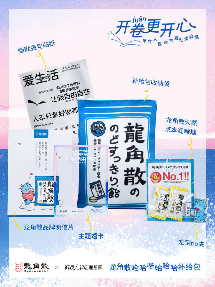 为传递喜剧精神,传达治愈与守护的品牌文化,龙角散在3月21日-27日与naive理想国合作,在阿那亚秦皇岛店推出“开卷更开心”互动体验展,让观众走出剧场后走进日常,继续开嗓更开怀。